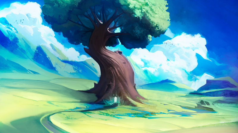 Aeiaris, the Mother Tree, is the sacred birthplace of all Bloomfolk. Through her radiant portals, Nym—the Goddess Incarnate—guides souls who have rejoined the aether, helping them cross once more into the living realm. Since the dawn of time, Aeiaris has stood as a bridge between life and rebirth, her vast interior transformed by Nym and generations of floramancers into a thriving sanctuary known as Nymara’s Rest. Within this living haven, the Bloomkeepers of the Nymaen Order devote themselves to aiding newly awakened Bloomfolk as they journey from the spirit realm back into the world of the living. || “Aeiaris, the Mother Tree” by Annieth@VGen