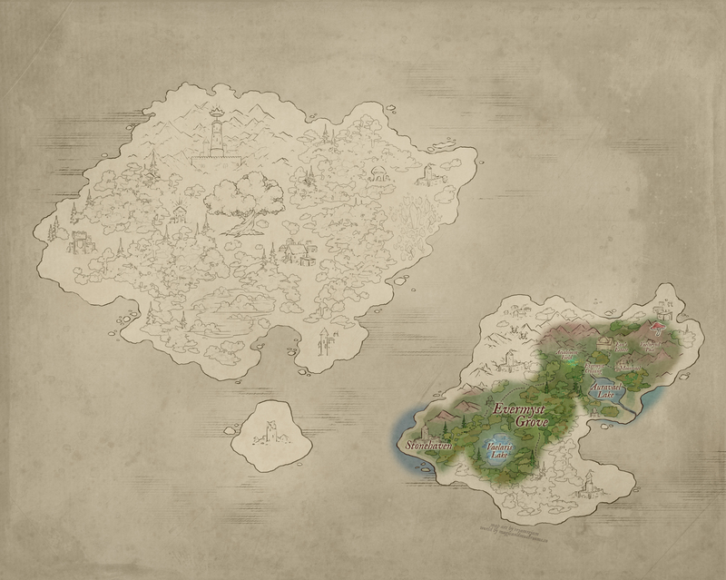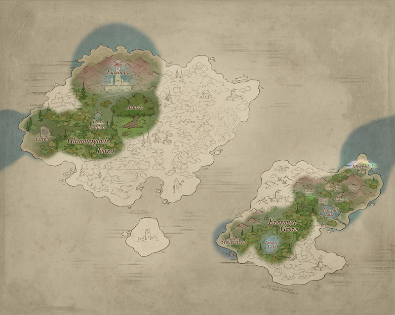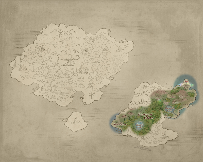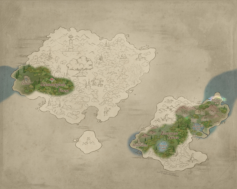 Eon’s Estate — Nestled deep within the heart of Evermyst Grove, Eon’s Estate stands as a sanctuary amid the wild, a place untouched by the dangers that prowl beyond its borders. Enshrouded in a powerful magical barrier, the estate is shielded from harm; its wards woven tightly into the grove’s natural aether, making it nearly invisible to those not welcomed within. || “Eon’s Estate” by malsikay@VGen