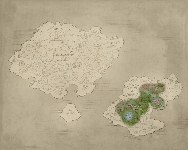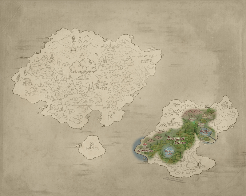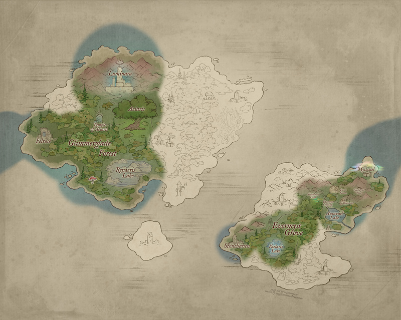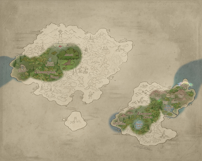 The Village of Z’laera is one of the earliest Dovaari settlements deep within the Glimmerglade Forest near Revaeris Lake. Originally founded by Z’laera himself, known as the very first and most powerful Peisio Dovaari to have ever lived, the Father of Hydromancy, as many Dovaari consider him. He communed with the earliest Peisio Dovaa and it is said he helped calm the violent seas of Aetherealm in the beginning. || “Village of Z’laera” by Cainlawiet@VGen