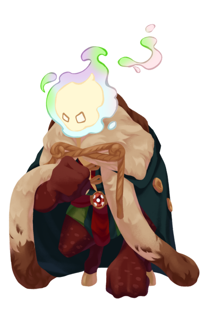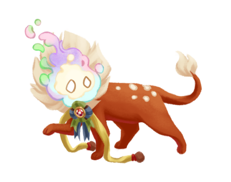 What makes Bastian truly unique is his form—an ethereal, billowing, flame-like head, a reflection of Ryder’s original magical essence. His ability to take on multiple forms, each suiting to the needs of the moment. He can manifest as a towering, elemental-like being, radiating power and capable of driving away any threat. Alternatively, he can shrink down to a small, fawn-like creature, light enough to perch on Ryder’s shoulder, offering comfort and counsel from a more intimate, protective vantage.