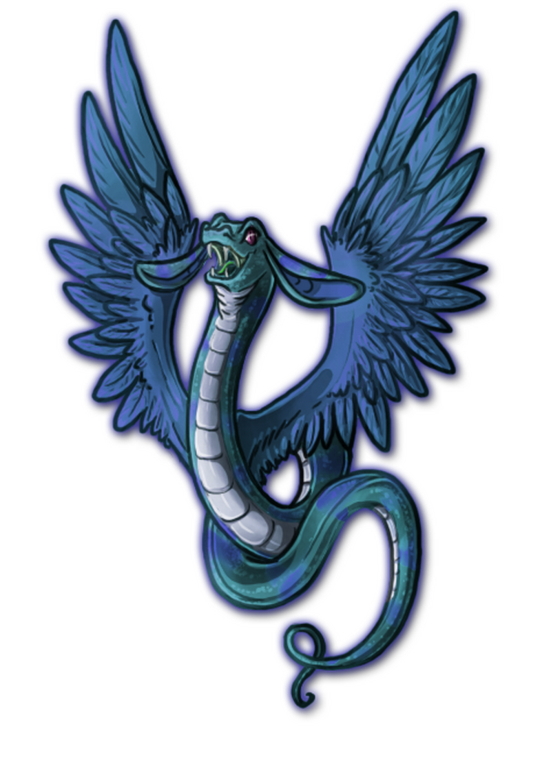 Description: The Feureches is a strange and striking creature—part serpent, part bird—its long, sinuous body adorned with delicate feathers, expansive wings, and oversized ears. Rarely seen on the ground, it spends most of its life soaring high above the treetops or nesting in the jagged cliffs of remote mountains. Though its slender form appears fragile, its muscles are strong and coiled with latent power.