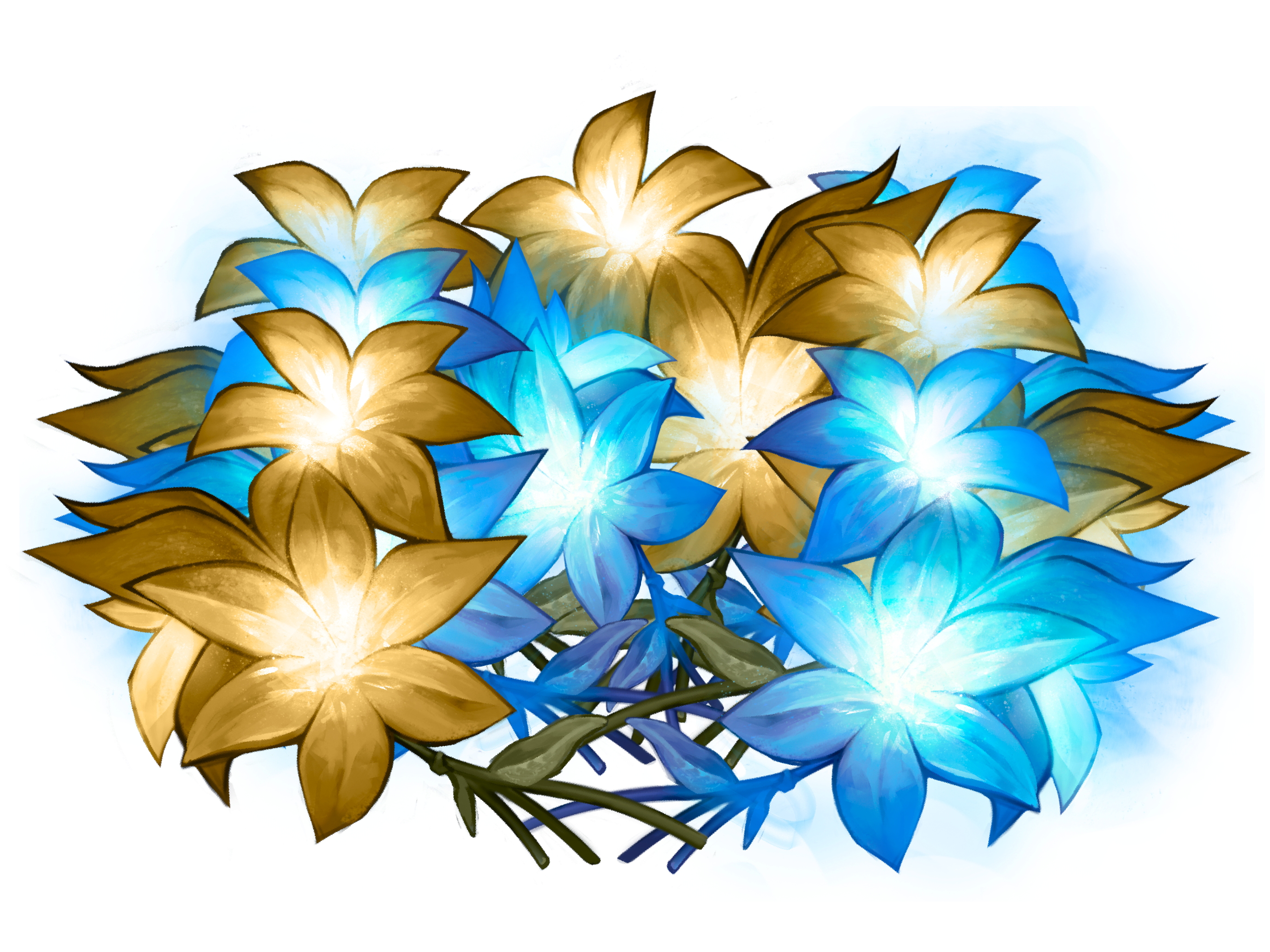 Ryder nodded slowly. “Yes, that’s exactly what it looks like. It glows, too,” he said, experimentally tugging at the aether with his fingertips. The threads responded, drawing away from the flower as if guided by his will. Slowly, the deep blue petals began to fade back into gold, drained of their magic. Above his palm, the aether gathered into a circular, buoyant sphere of pure energy.