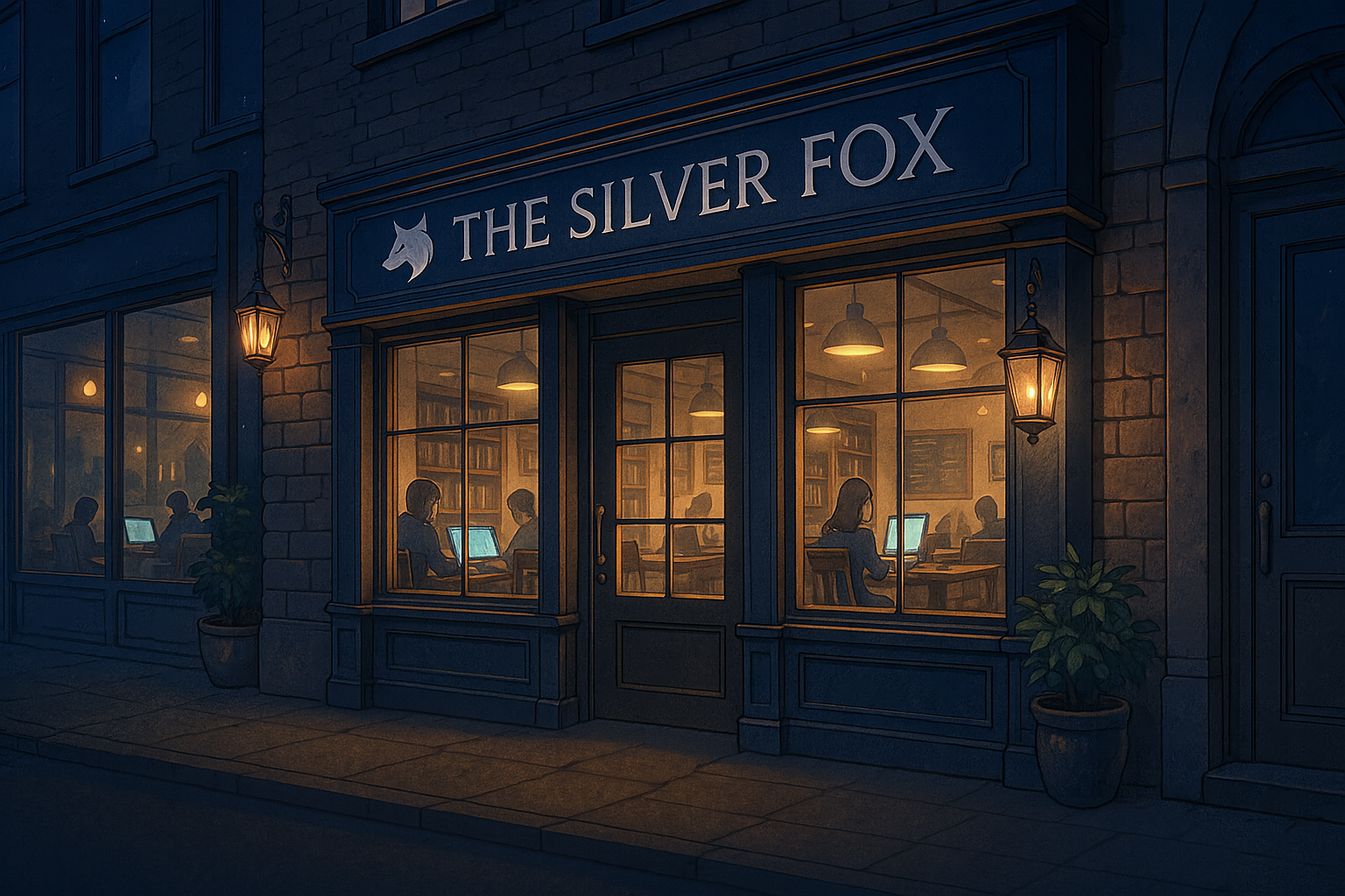 [Picture] ◈ WHO:Cordelia, Adrian, Reuben, Ryder, & Evan (Ebony Shade & Skyeforge) ◈ WHEN: Evening on October 31, 2017 ◈ WHERE: The Silver Fox Tech Café & Lounge ◈ WEATHER: Chilly. [Picture] As Adrian...